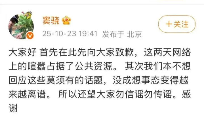 今年,何超莲与窦骁一度传出婚变。10月23日,两人先后发文回应。