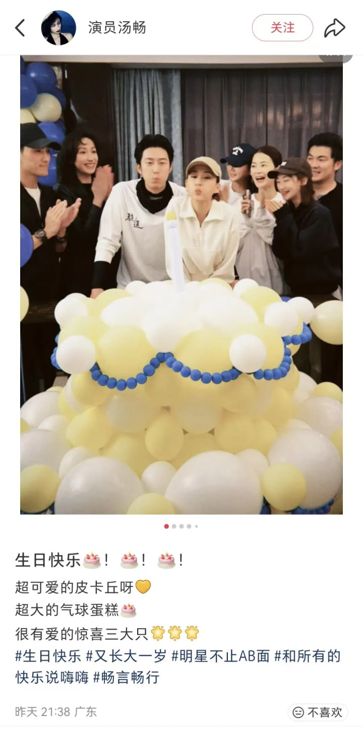 12月15日,演员汤畅在个人社交平台,分享了一组演员窦骁的37岁庆生照。